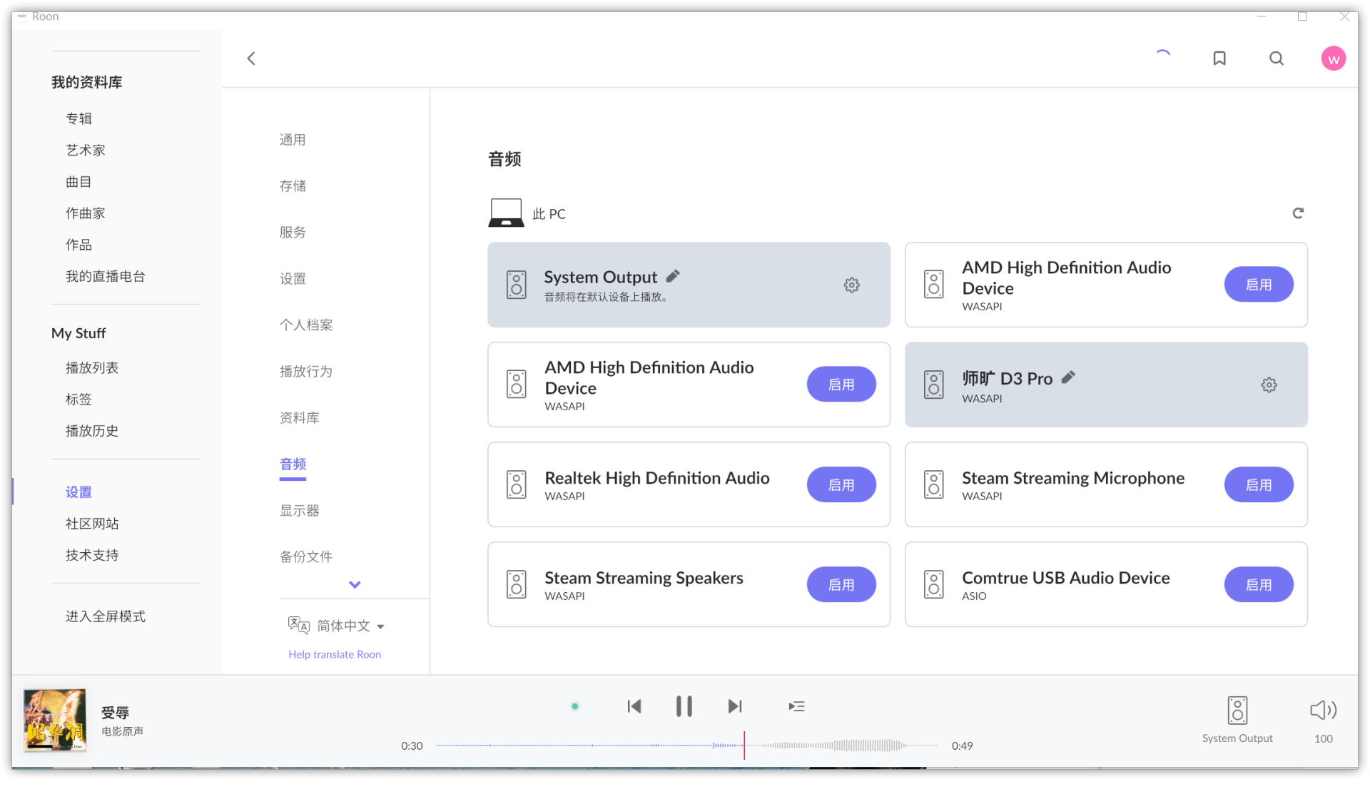 ▼这里我用WindowsPC版展示。启动下载好的roon软件,可以看到已经识别到了我创建的媒体服务器,连接即可。