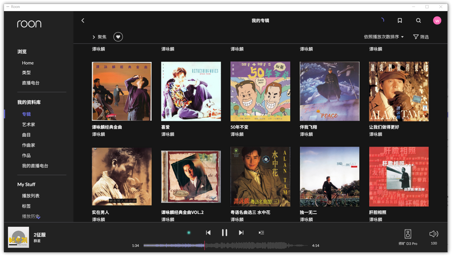 roon的数据库是搭建在NAS上的,所以不管你使用哪种终端登陆,自己做的分类、收听的喜好、自己做的播放清单都是完全同步的。而且就本地的曲库整理来说,roon可以吊打99%音乐类软件。