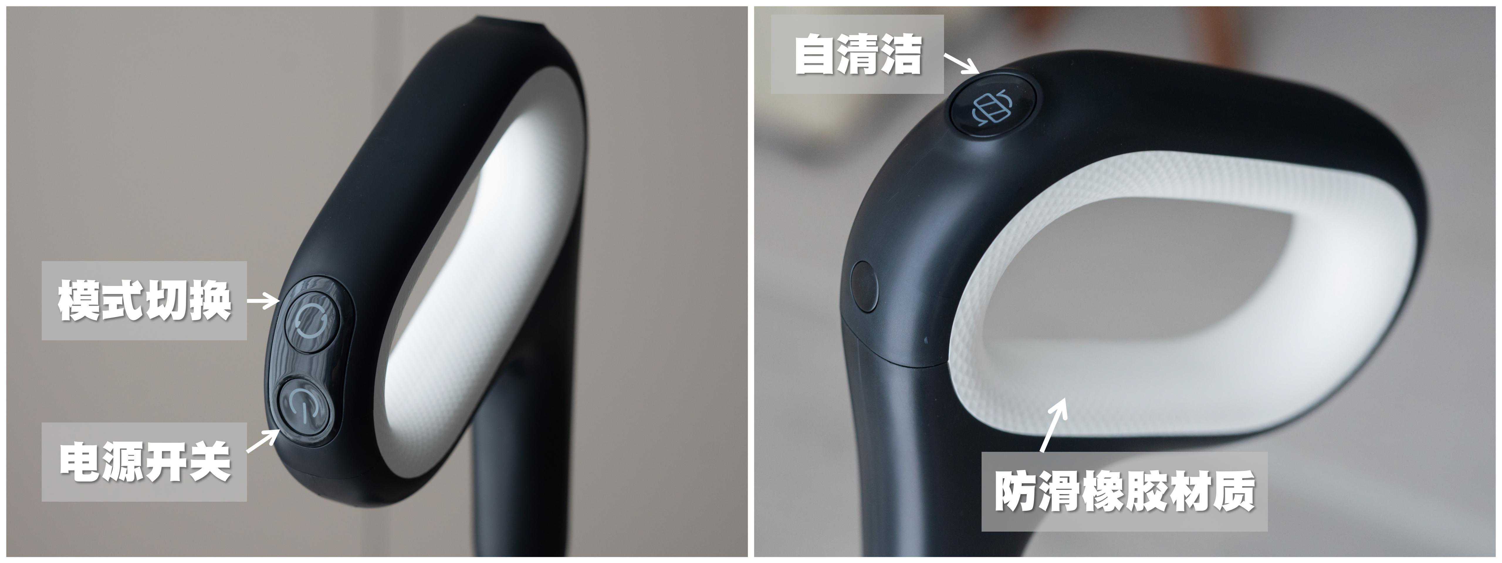 而在操作方式上也同样简洁,只需要通过把手上3个不同按钮来就能对洗地机进行操作。把手白色接触位采用的是防滑橡胶材质,手感超级棒。