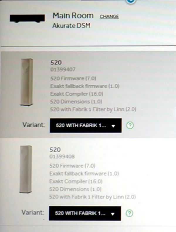 进入EXACT调整选项,主机会自动侦测音箱的型号与其他信息并启动音箱,Linn520没有电源开关,由主机控制