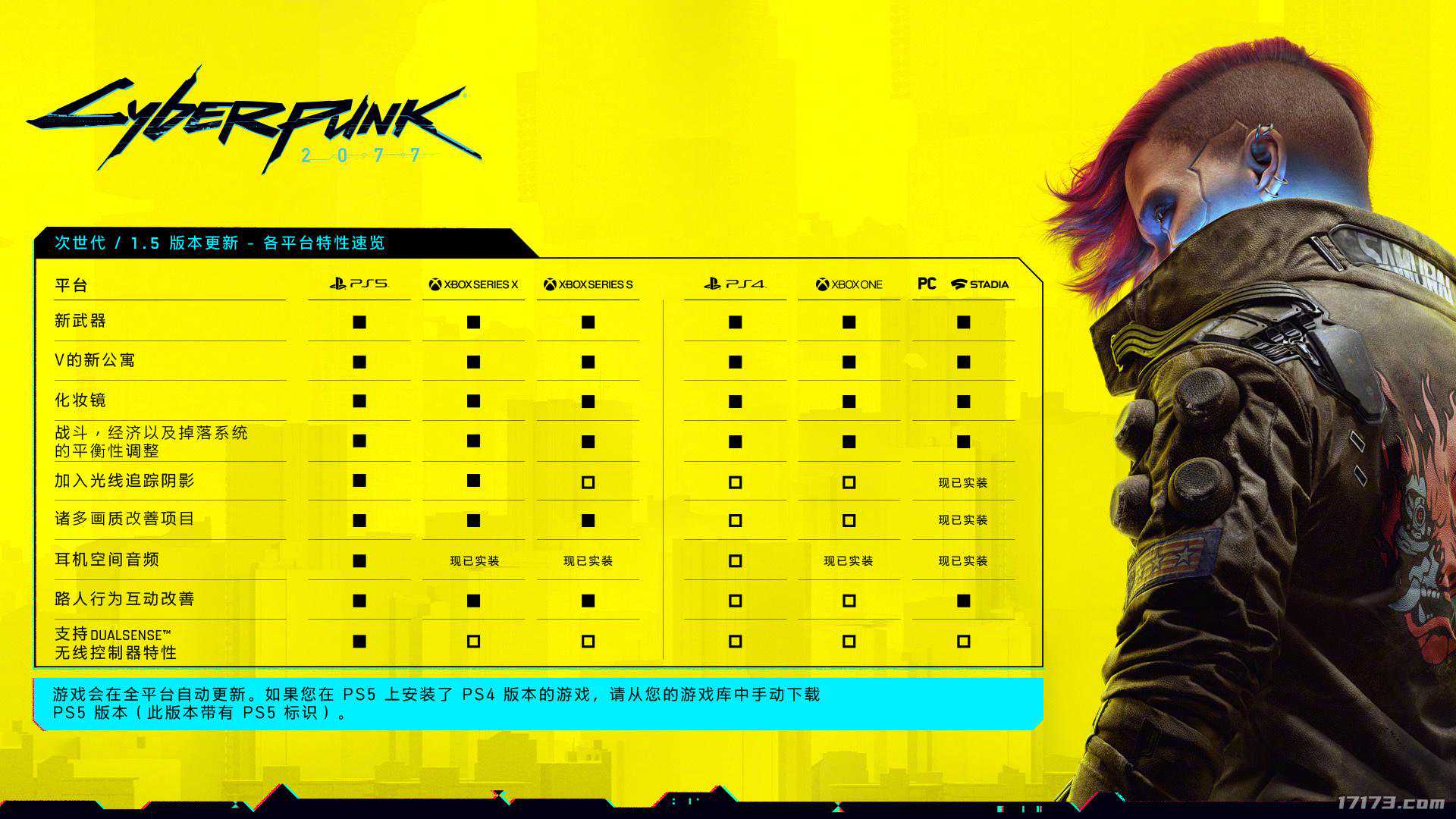 《赛博朋克2077》次世代版本与1.5版本现已同步在PS5/XboxSeriesX|S推出。