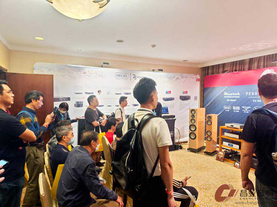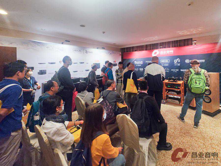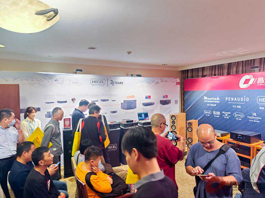 昌业的展位位于东方宾馆展区五层的526房,三日中一直保持稳定的参观人流量。从今年昌业参与的近十个音响展来看,广州的人气还是明显高于国内的其他城市。展位主展区展示着昌业代理的HEGEL、Penaudio、SFORZATO、MuarahAudio、ATOLL的主要产品系列和多个组合分别示范;两旁则有ATOLL+RossoFiorentino以及HEGEL产品线的静态陈列展出。