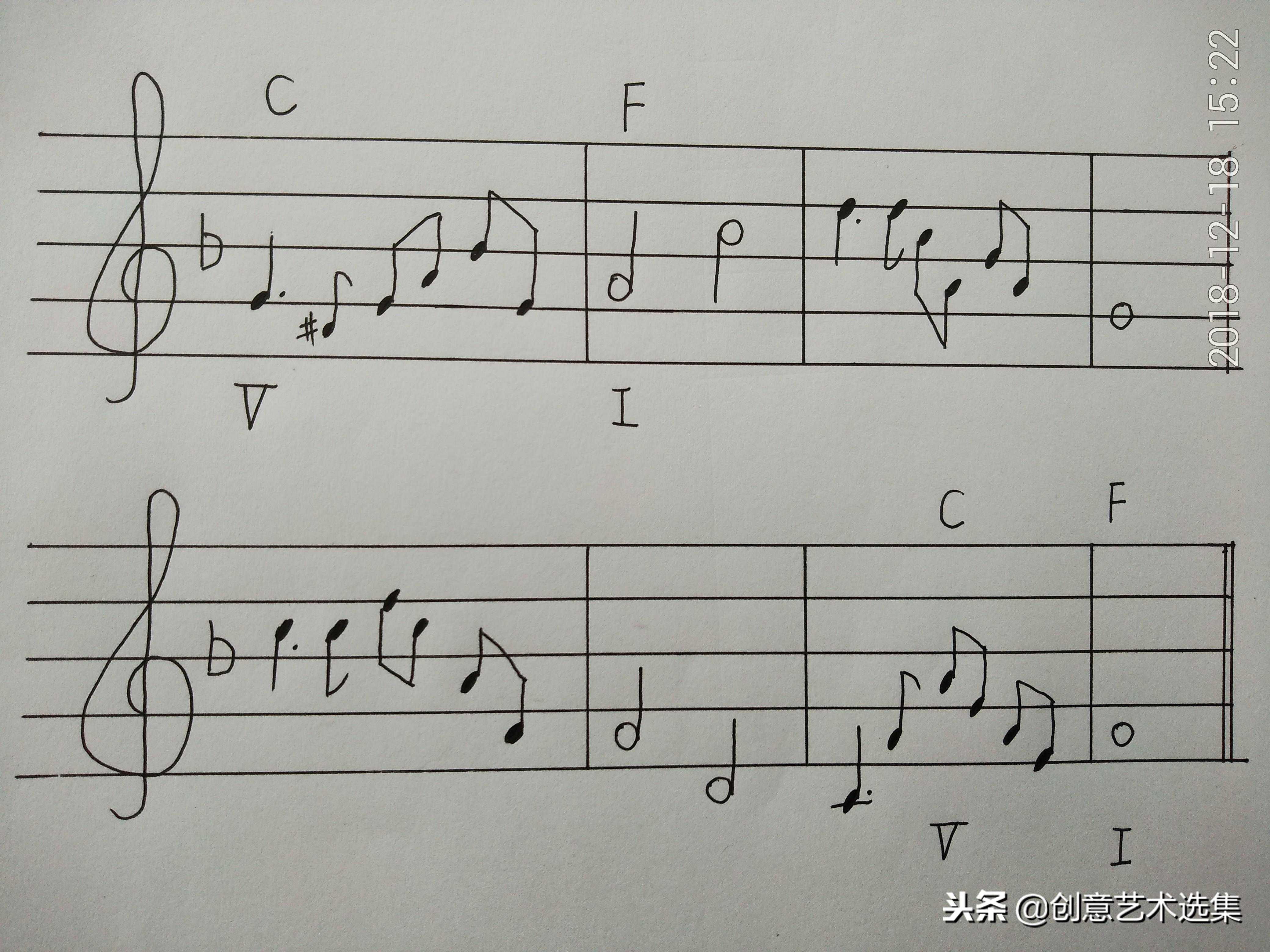 第三小节的旋律是|5.13153|,根据135判断是I,F和弦