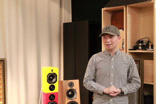 为了挑战声雅的这台A-238的极限,今天的演示还特别追加难度使用两对SCM7特别版以叠罗汉的方式,倒置并联成为哑铃式单元布局来出声。SCM7本身对功放已经有很高要求,采用并联方式使得音箱电阻减半,对功放来说便是个更大的挑战。而之所以采用一黄一红配黑色脚架,形成德国国旗的配色,这是暗暗呼应声雅A-238这台ATC特别定制版所携带的德国血统。随后请出了声雅音响的创始人何焯坚先生对A-238进行详尽剖析讲解。