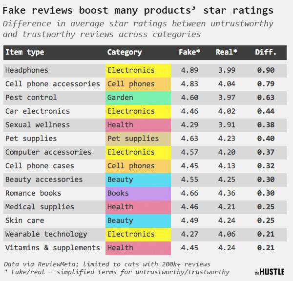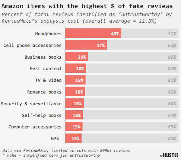 “这些获得五星好评的产品大多都是价格低廉的杂牌产品。比如手机充电线、耳机、屏幕保护膜等。”努南说,“这些产品的制造成本都非常低,而利润率则非常高,而且用户需求也非常大。”
