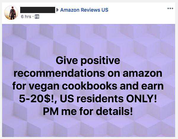莫瑞纳斯已经通过Facebook群组的“找托儿”信息,成功地在亚马逊平台上为112个产品留下了五星好评。