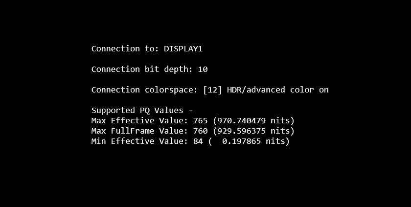 P27A6V采用了1152分区背光,测试的主要参数都达到了VESADisplayHDR1000规格,开启HDR后色深自动调整为10bit,系统内也可以正常抓取到DisplayHDR1000Tier(但从官网看没有送测认证,抓取Log信息符合HDR1000Tier,推测应该可能是成本原因)。PQ模式下最大有效亮度970nits,最大全屏亮度929nits,最小有效亮度0.1979nits,全屏亮度表现不错。DisplayHDR下,峰值亮度1015nits,最大全屏亮度972nits,最小有效亮度0.1699nits。