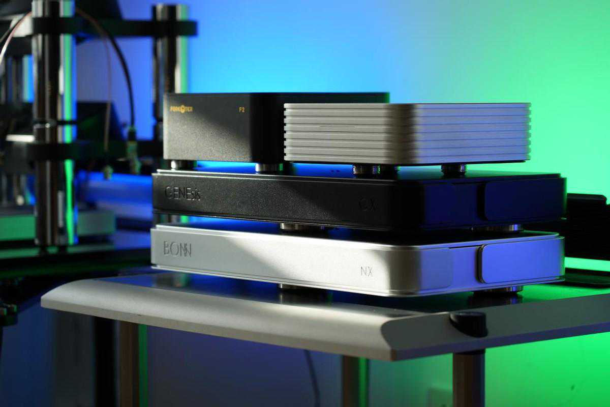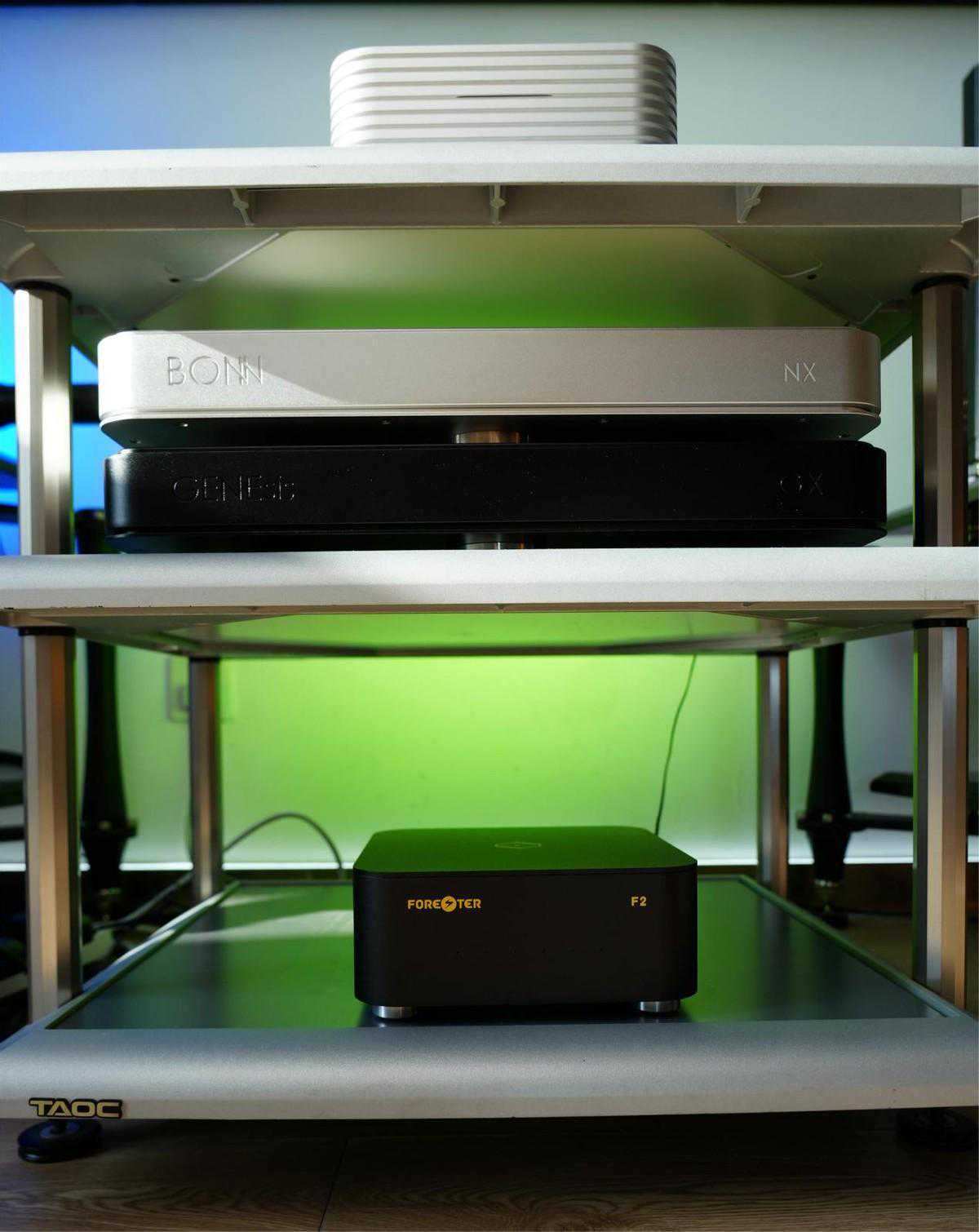 声音之类的,其实不必多说了。我拿普通的线性电源换下F2,因为先听过完全体的声音,相较之下声音失去许多稳定性和参考感,于是在测试全程,F2都链接着Z1Plus和GX,就没再拆下来。NX有220V供电接口,就用了一条优质的电源线。几件设备摆上,NX连接屋内路由器,GX先待命,Z1Plus外接一块硬盘。