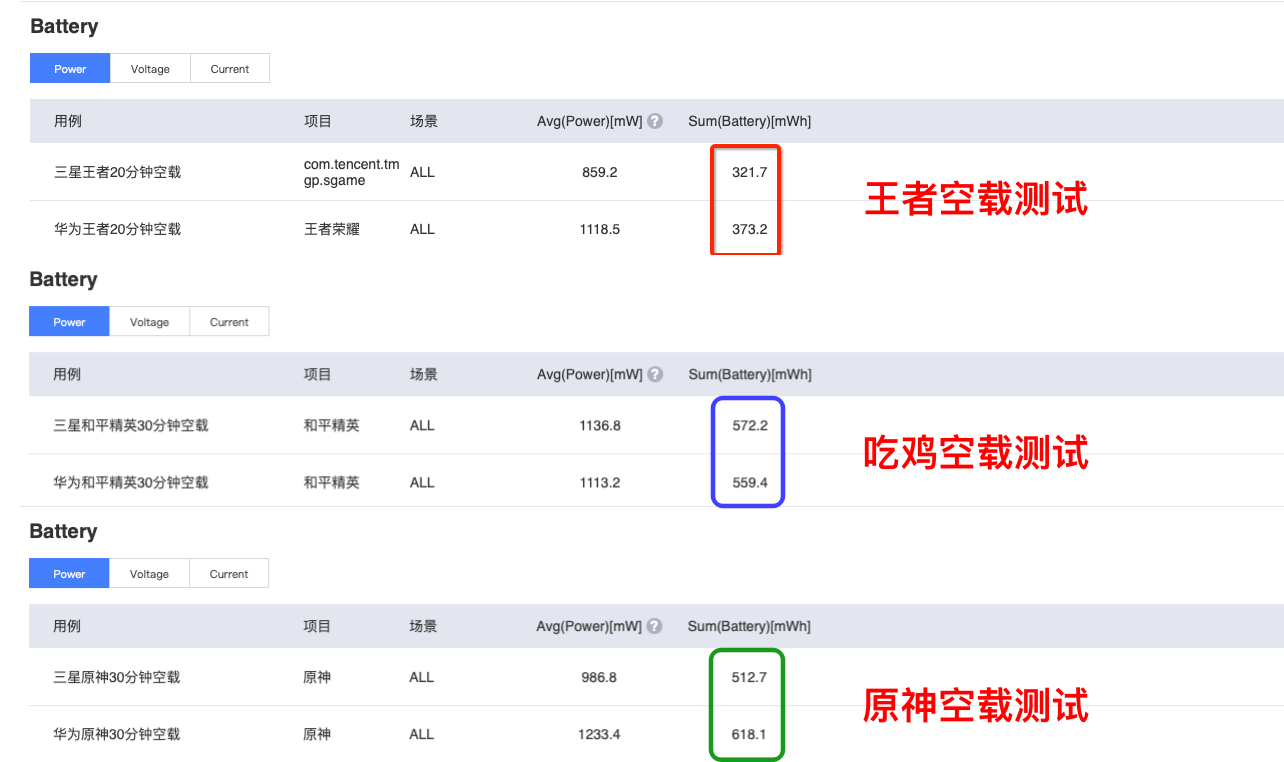 实测两款手机空载功耗如上: