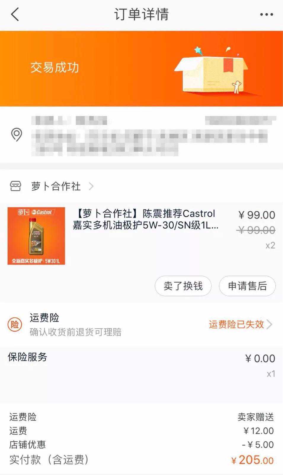 嘉实多极护的5W-30SN机油来自萝卜合作社,按99元每瓶购入。