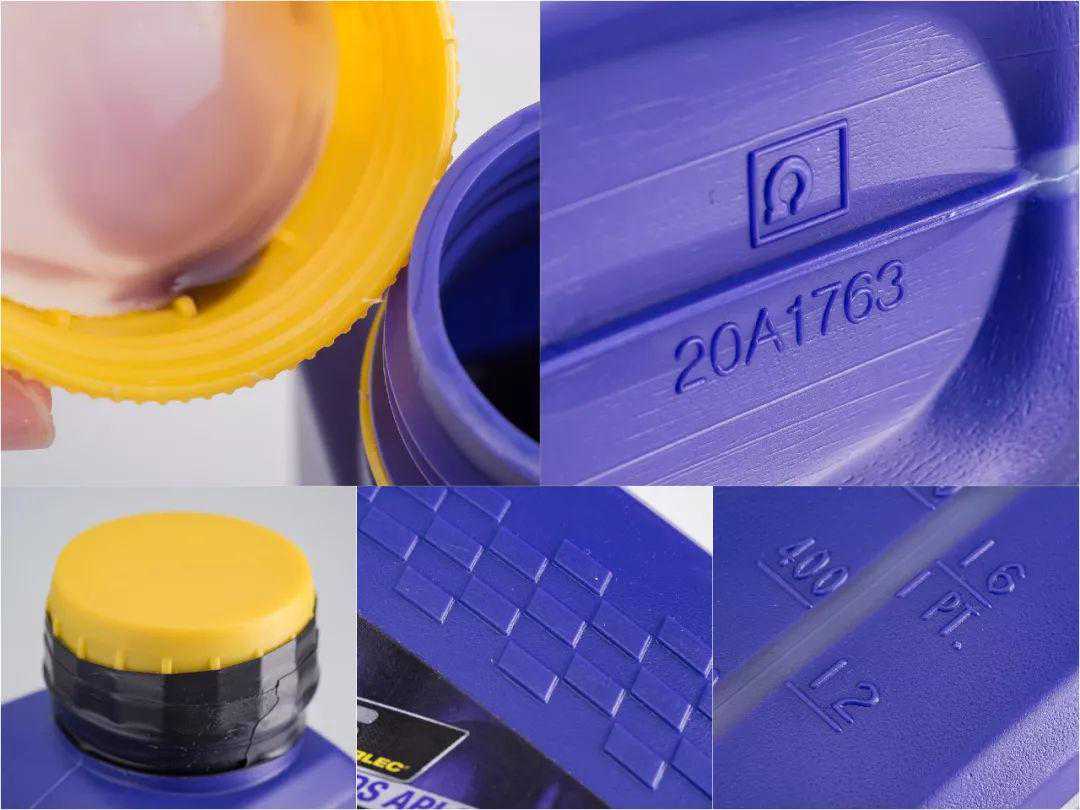萝卜合作社的机油同样采用了专用包装,但包装较为紧凑,防震填充物几乎没有。拿出机油,瓶口有覆膜,防伪镭射标以及瓶盖防伪标签清晰,瓶底字迹清晰。