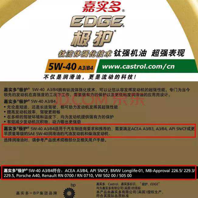 ▲嘉实多极护5W-40也同样通过了VW认证,也可用于奥迪A5的EA888发动机。但这款机油没有菲亚特和克莱斯勒OEM认证,所以相关车型不建议使用此款机油。