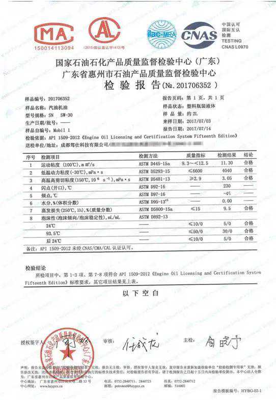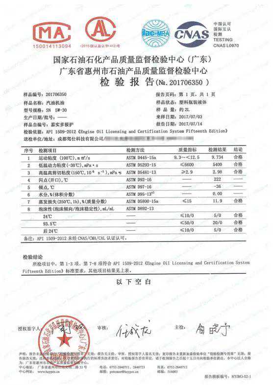 本来我准备拿着这些参数和各厂家公布数据进行对比的,但最终还是放弃进行对比。原因是不同地区生产、或者说不同批次的机油参数都不同。