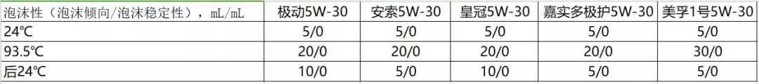 根据相关国标测定方法,测定机油在(24℃、93.5℃、后24℃)温度下产生泡沫量的大小,数量当然是越小越好。