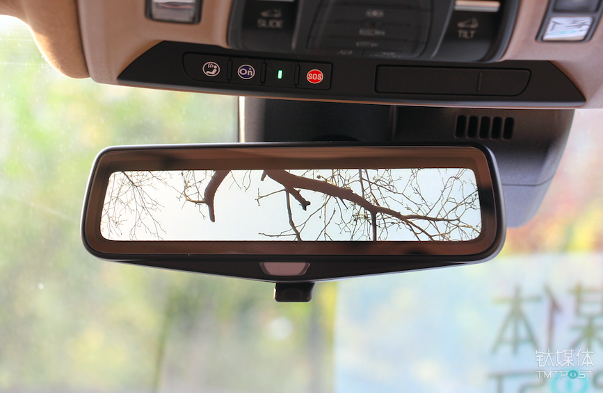 当然,还有嵌入在挡风玻璃下的HUD模块,基本上坐在主驾驶位可以非常轻松地通过挡风看到当前的车速、ACC状态、方向指示灯等基础信息,而通过流媒体后视镜也能够更为直观的观察车辆后方的路况。