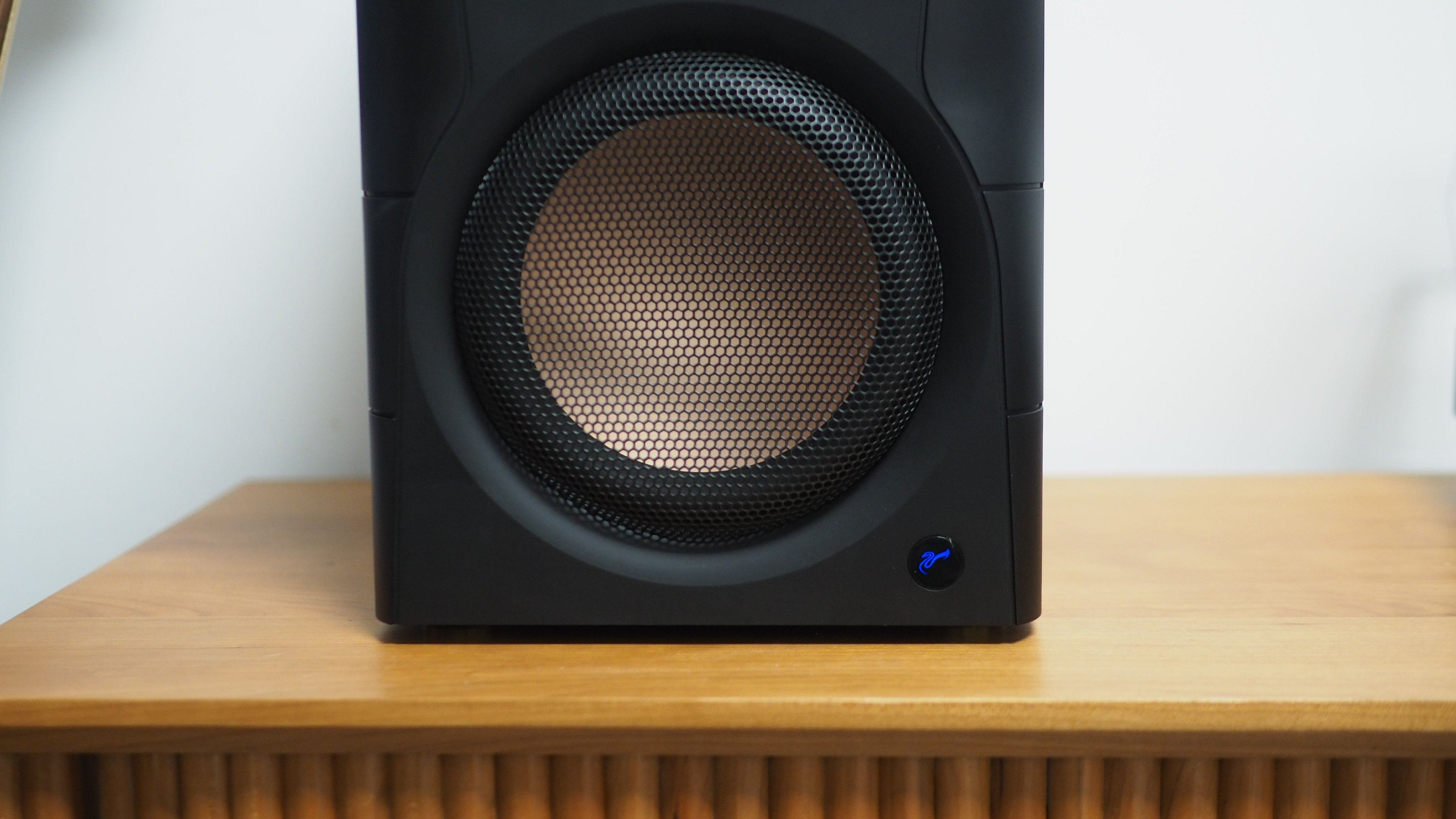 正面上下两个部分:上半部分为高频单元,下半部分为超大尺寸的低频单元。