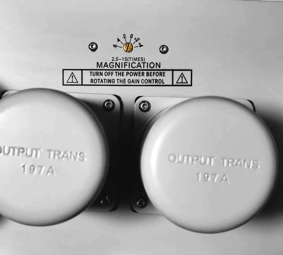 ①通过输入变压器的抽头绕组实现增益调整,计有-6、-4、-2、0、+2、+4六级调整,0是正常增益(十倍放大)。