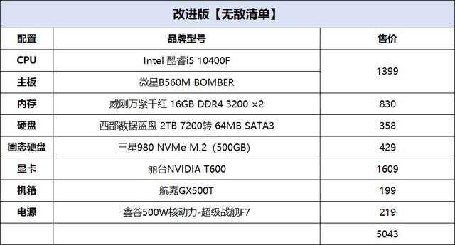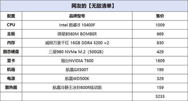 在今天的攒机单点评中,是来自网友的【无敌清单】配置,这名网友的配置单总价不到6000元,且采用了T600专业显卡,下面我们来看看为啥他称这套配置为【无敌清单】?