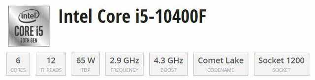 i5-10400F主要参数