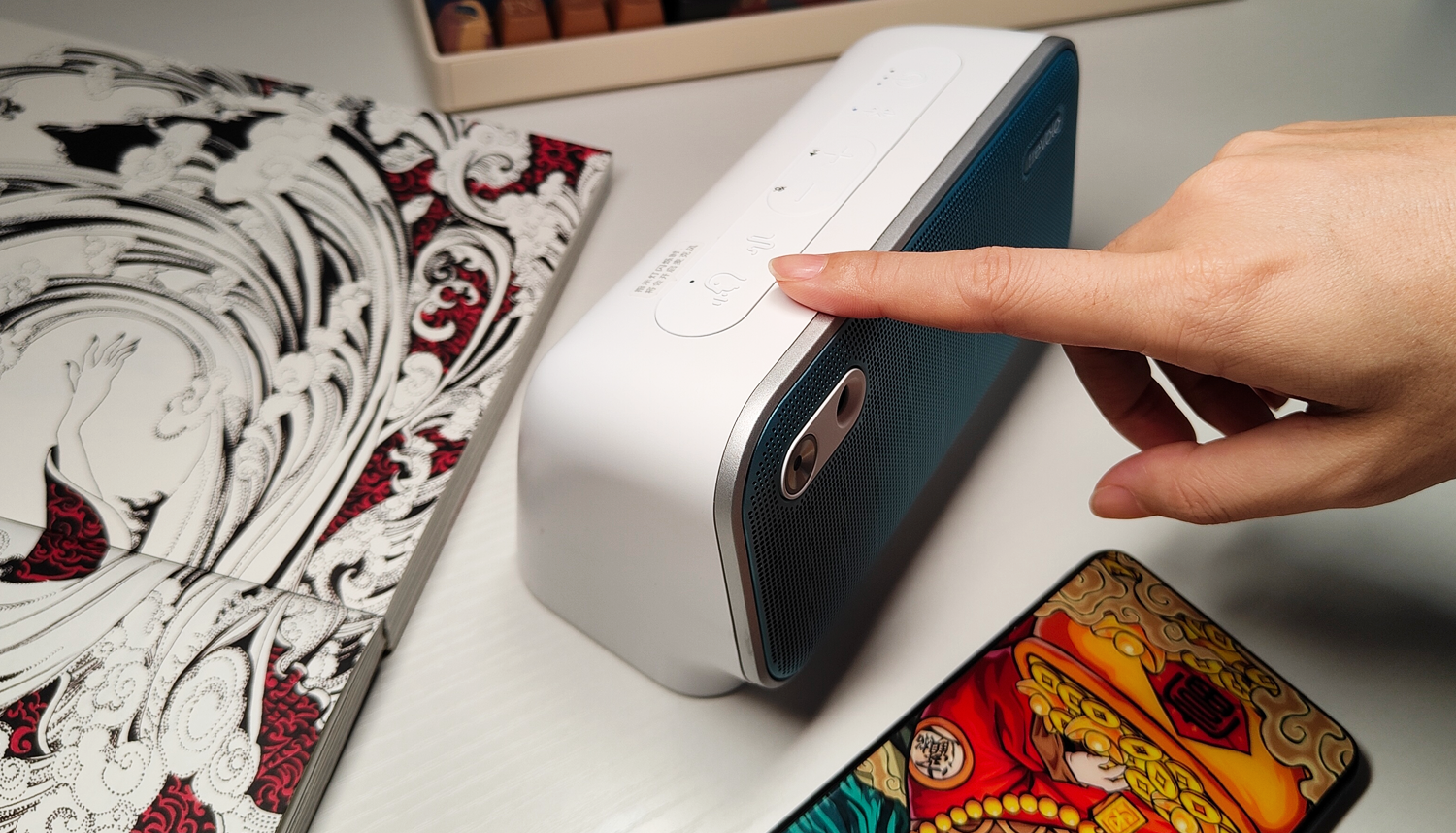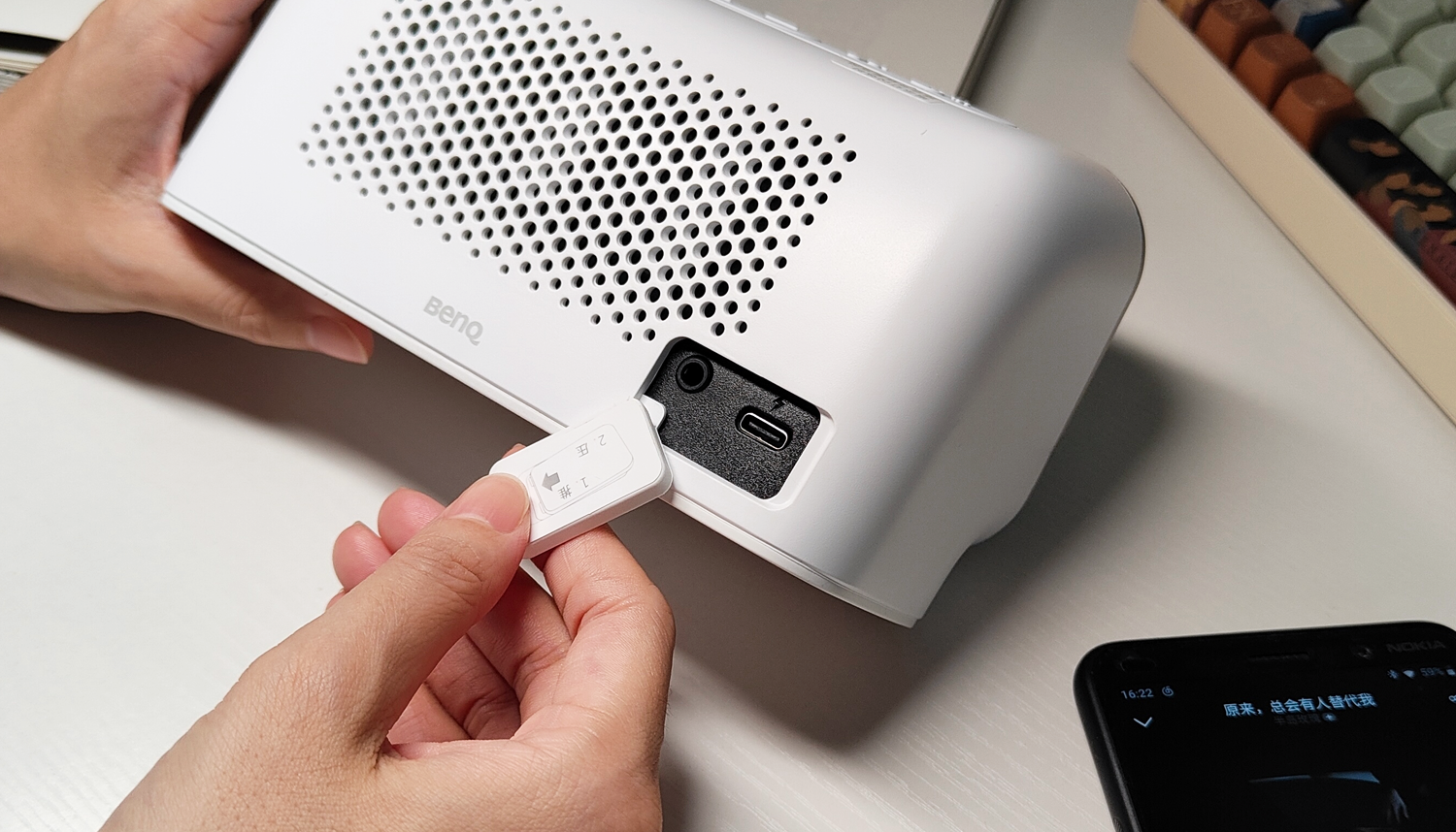 用明基treVoloU音箱来听有声小说、评书、相声也相当有趣。这些本来就是以语言为主的载体内容,在明基treVoloU音箱的加持下,音源部分中的人声也会更加独立,个人风格凸显。而且由于采用了12°的仰角设计,所以声音的方向性更强,听几段鬼吹灯啥的,很有感觉。