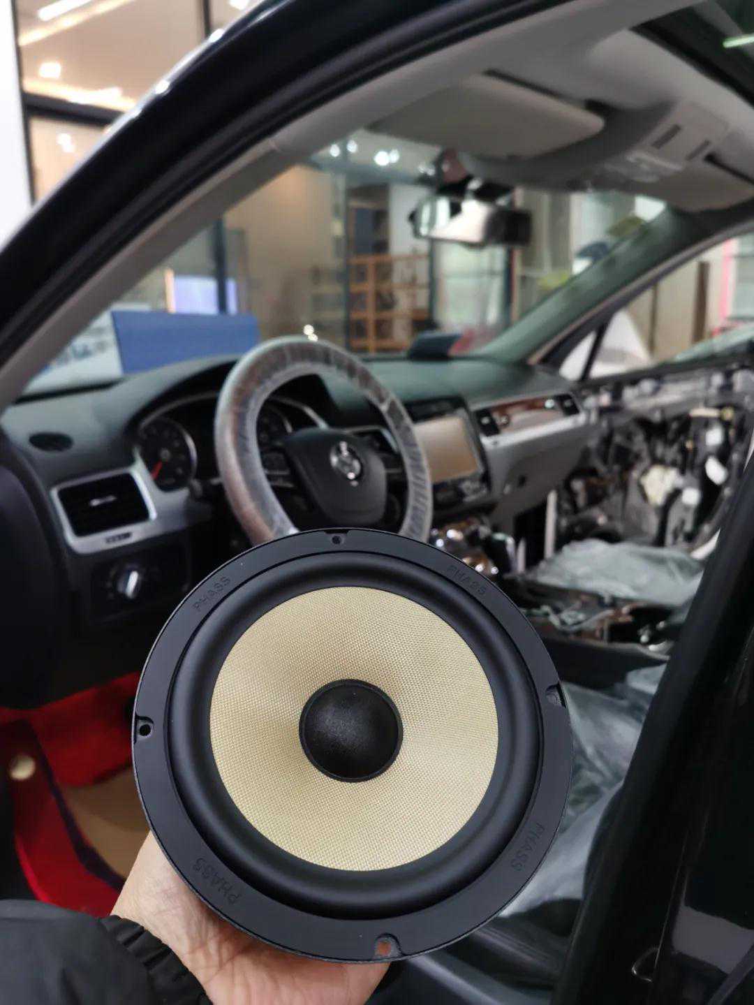 大众途锐,车主一直苦于寻找一套性价比高的音响系统,今天他来了,前后门八喇叭音响升级,一台处理器,专业电脑调音,高性价比的音响系统!今天的主角是我们的PHASS妃仕PI-165G两分频,来看一下店家是怎么改装的吧!