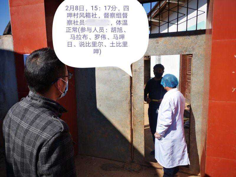 第三步:从外出返乡人员进村开始,卡点测量体温并告知注意事项,且由村两委安排专人在保证安全距离和做好防护的情况下,进行跟踪监督并使其知晓(不得侵犯个人隐私),防止其与村内人员接触。