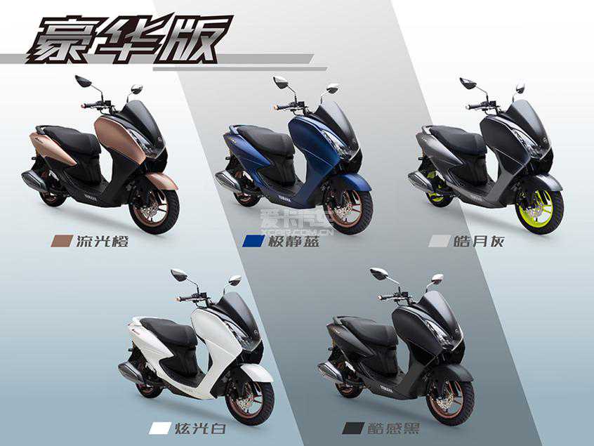 豪华版,也就是11900元售价的那款车,一共有5款颜色,主要变化在于车身及轮圈配色,反光镜材质,12V电源接口,排气管罩材质等细节部分,下文会一一说到。