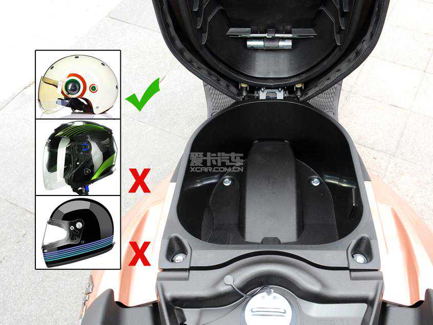座桶空间不算大,只能容纳基础型半盔。后期只能通过额外安装尾箱解决,这一点不如台湾品牌考虑的周到。