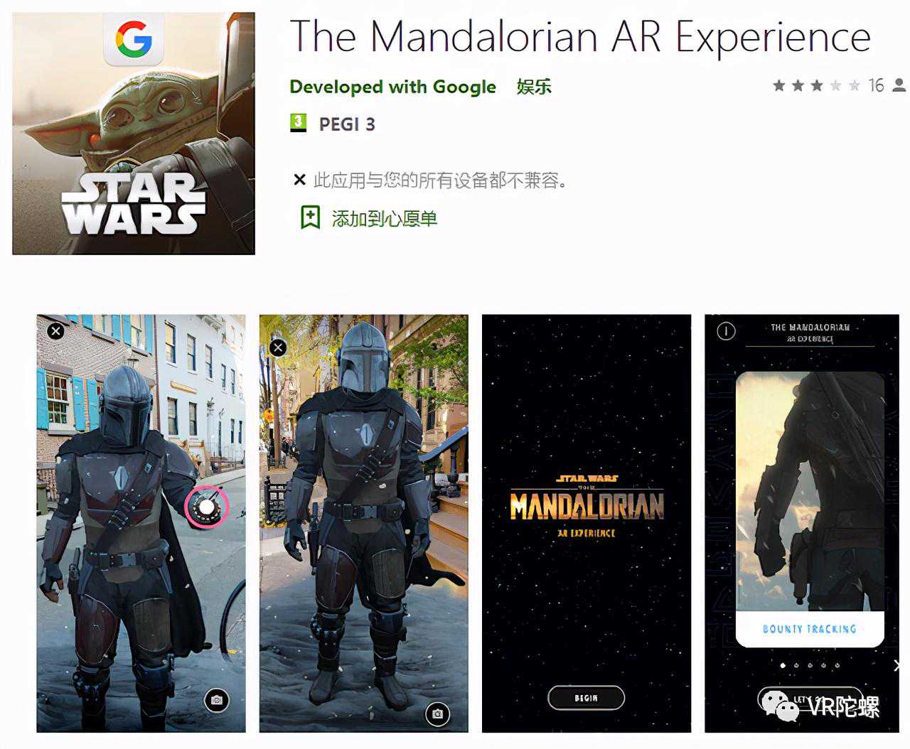 VR陀螺11月24日消息,趁着Disney+剧集《曼达洛人》第二季热播的热度,Google与卢卡斯影业合作,带来了该剧的AR体验项目。你可以通过这款名为《曼达洛人AR体验》(TheMandalorianARExperience)的AR应用让Mando和“Yoda宝宝”(TheChild)来到现实世界,与他们互动、合影。