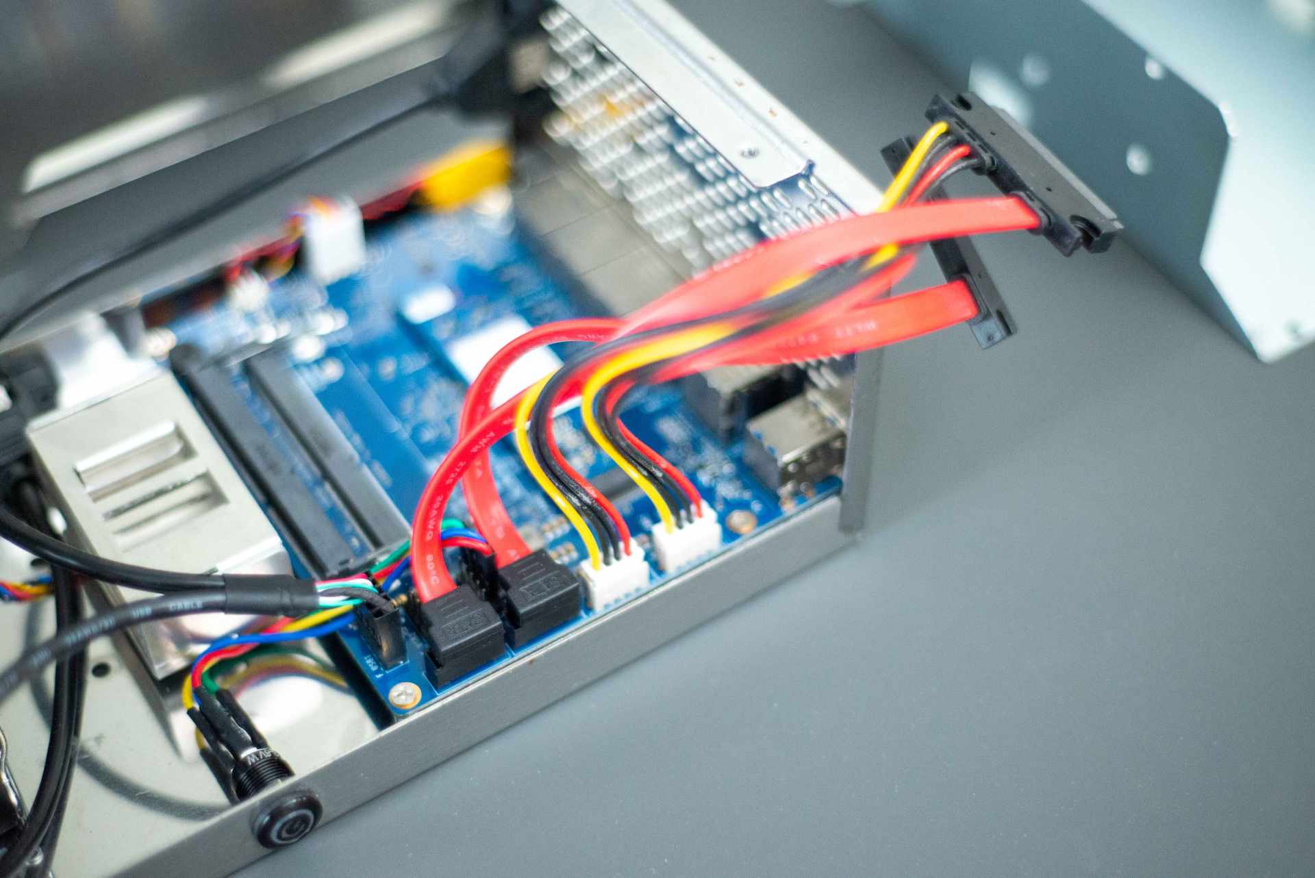 ▼两盘位,线已经插好了,接上硬盘就可以用。