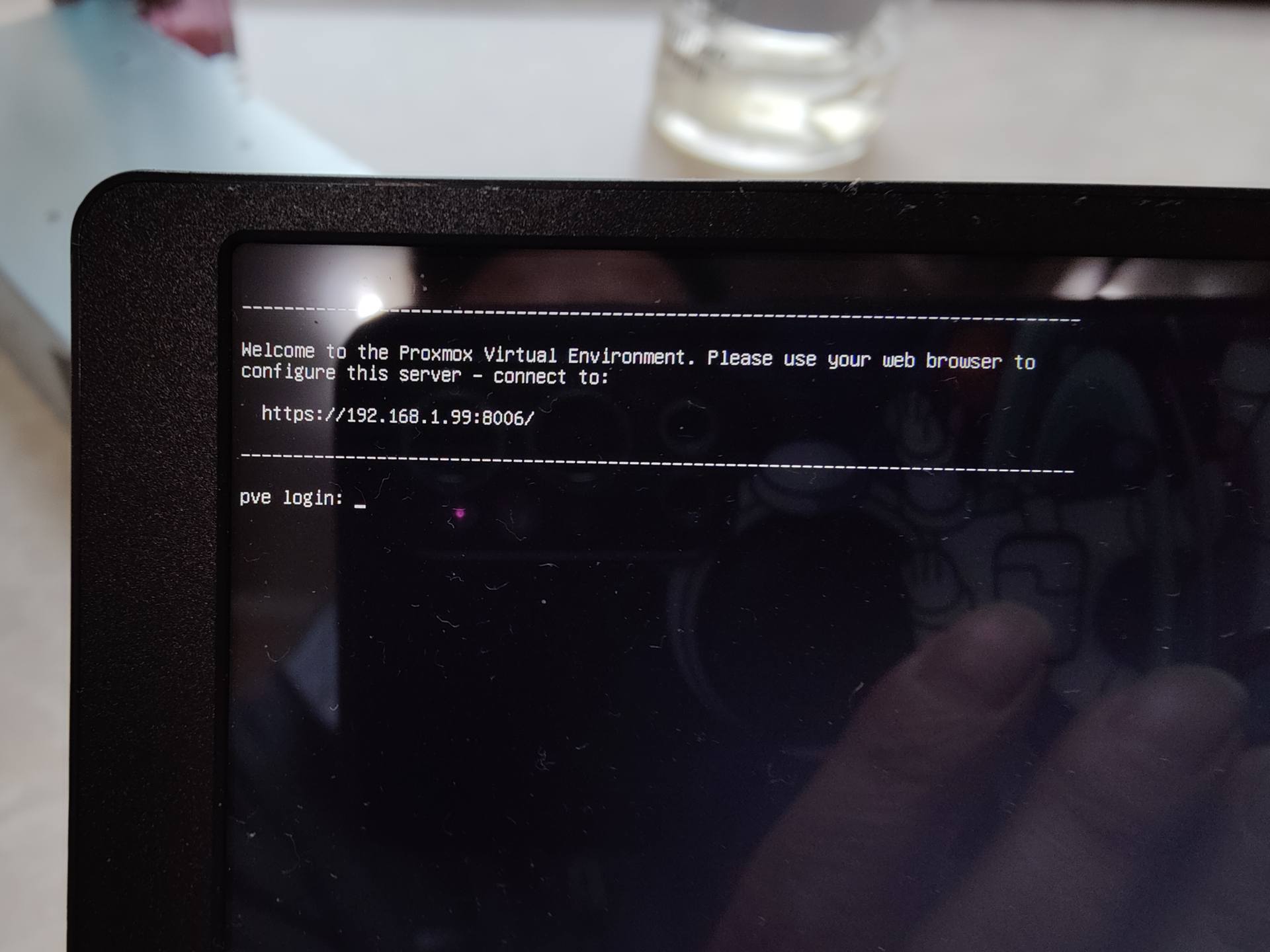 ▼开始还傻乎乎的接上了便携屏和键盘,结果发现直接就可以登录PVE的后台,根本用不上这些设备去BIOS里调节。店家连BIOS也已经设置好了的,完全是手把手把饭喂到了嘴边。不过既然接上了也别浪费,拍个照给大家展示一下,当你在屏幕上看到这个网址就说明PVE正常启动成功,可以进入后台了。