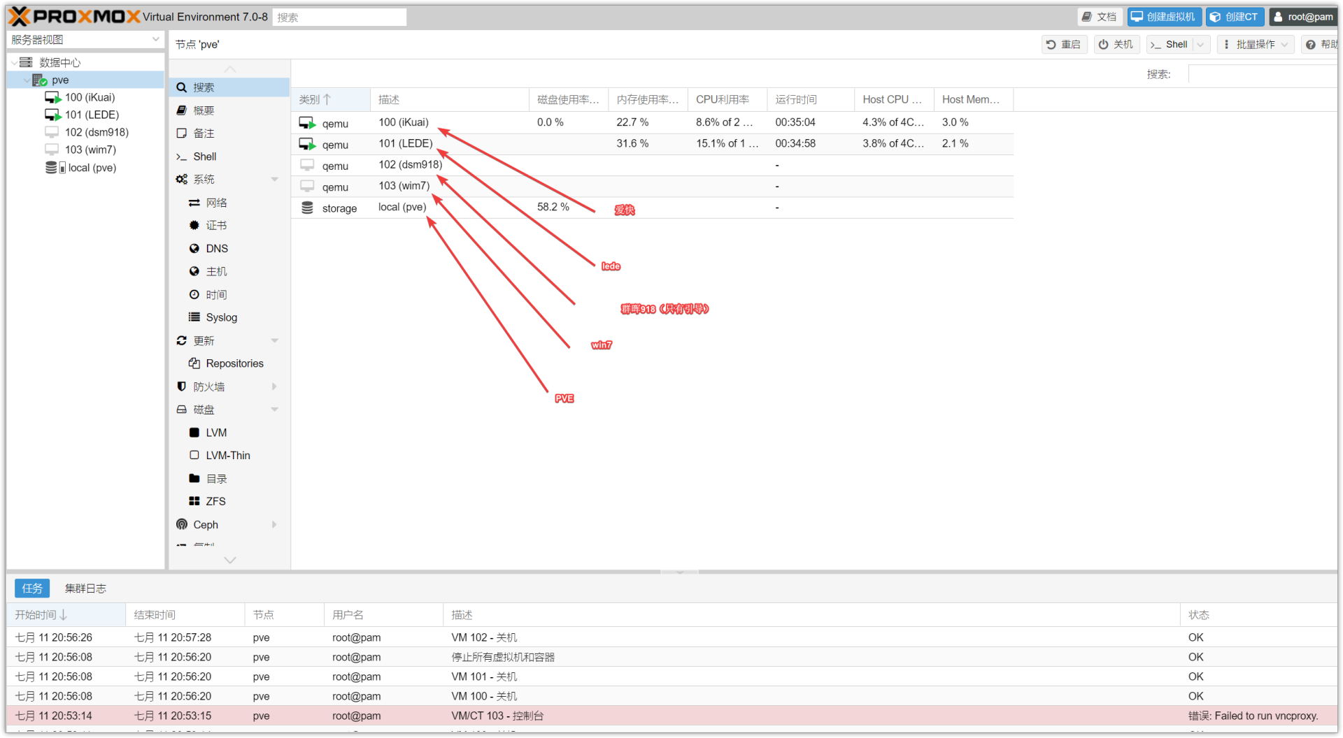 PVE自从更新到7.0后稳定性有了很大的提高,而且也是对群晖7.0支持的最好的虚拟系统。不过对新手来说,安装过程一言难尽,用一步一坑来形容都不算夸张。我记得当初就折腾过以PVE为底层系统的AIO,配置起来真的超级麻烦,搞了一半就放弃了。而铠晶这个箱子真的是将所有东西都给你折腾好了,直接用就行。引用铠晶大佬制作的一张示意图