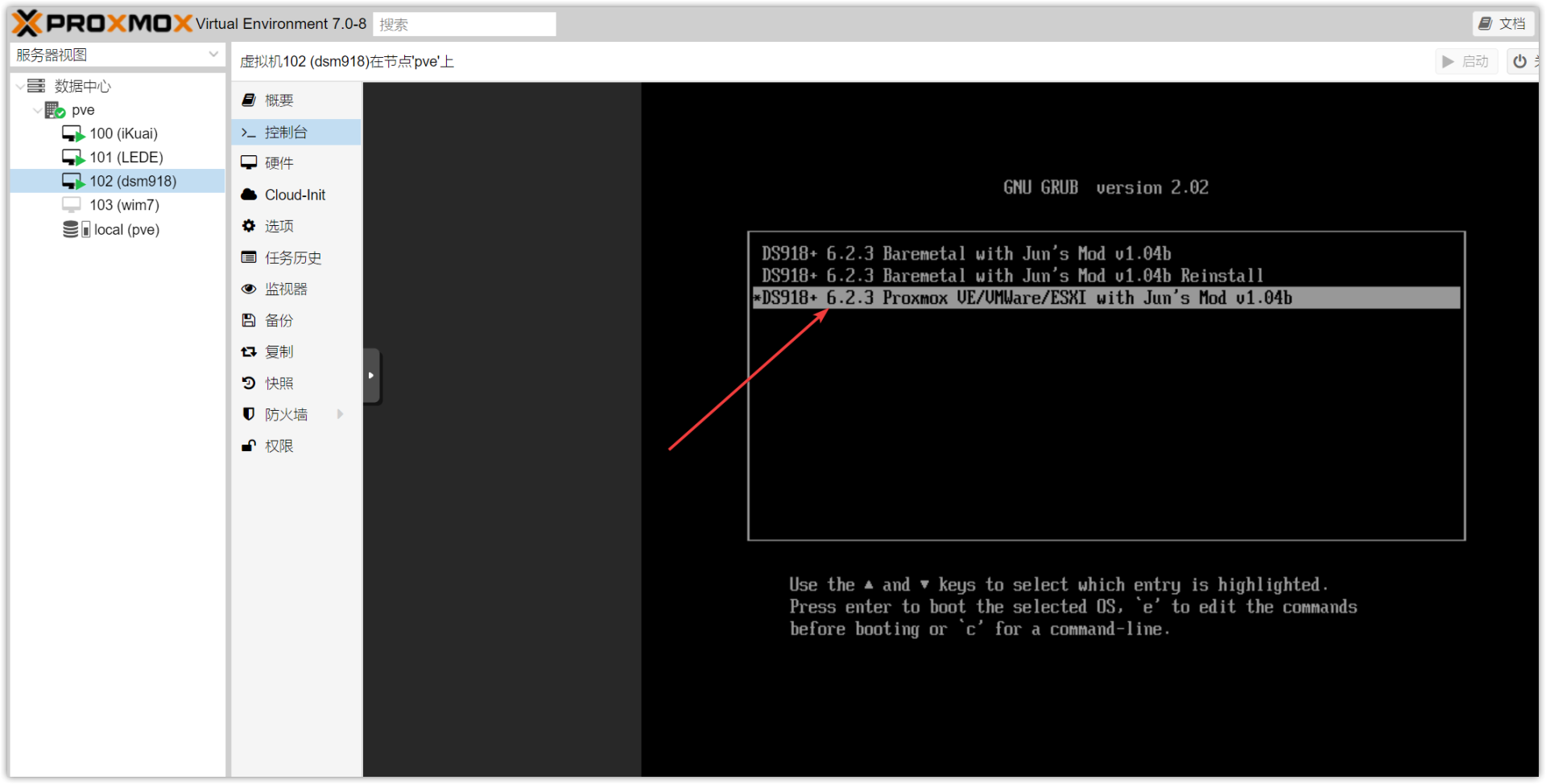 ▼这里我们必须选择第三项,这是虚拟机的专用引导。