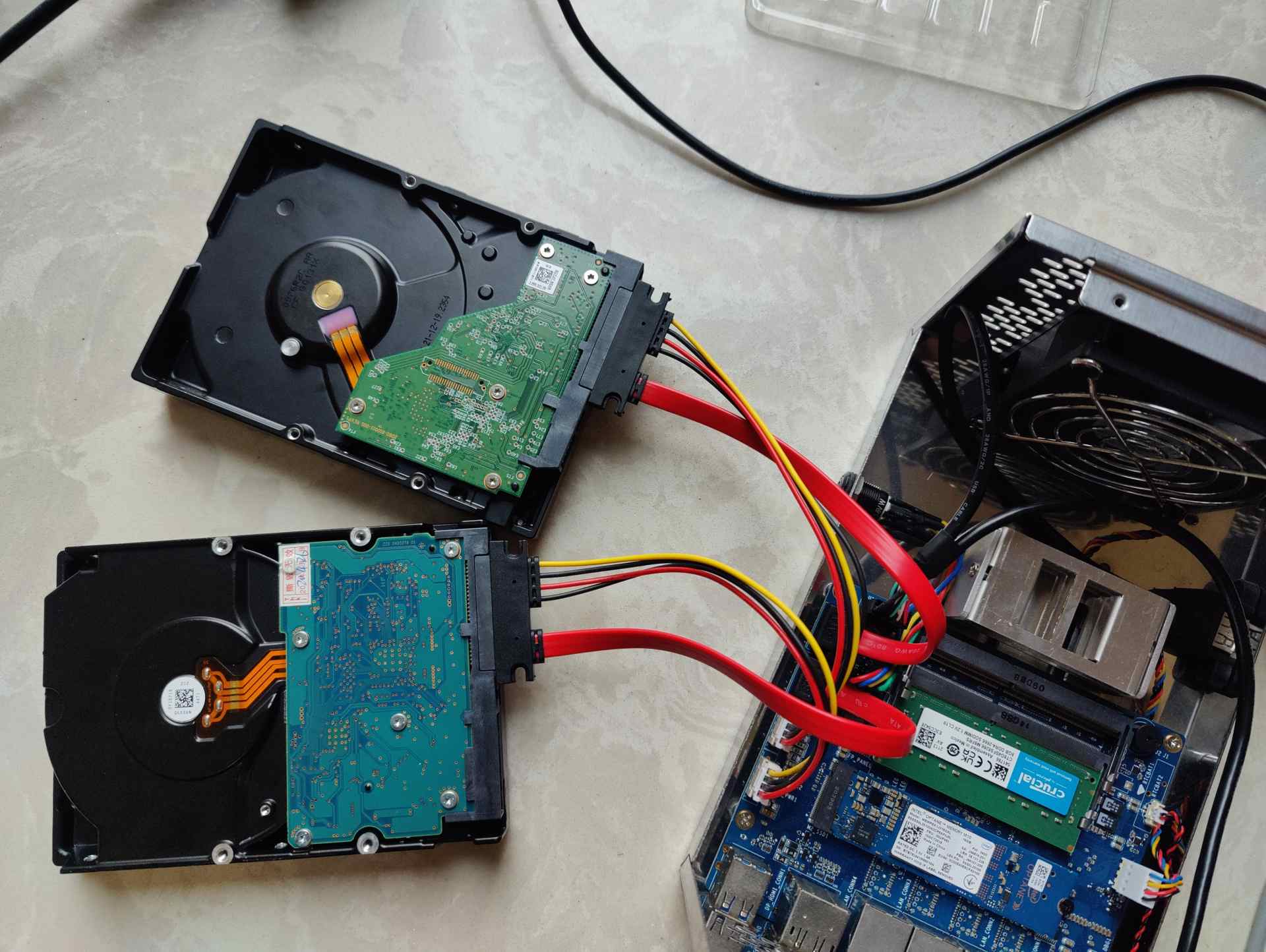 但是这个配置功耗又太高,N1是个五盘位机箱太大,之前用它组黑群也是因为手头没有趁手的处理器。而且两个硬盘保种足够,少挂点硬盘功耗也低点,所以黑群还是不动他了。