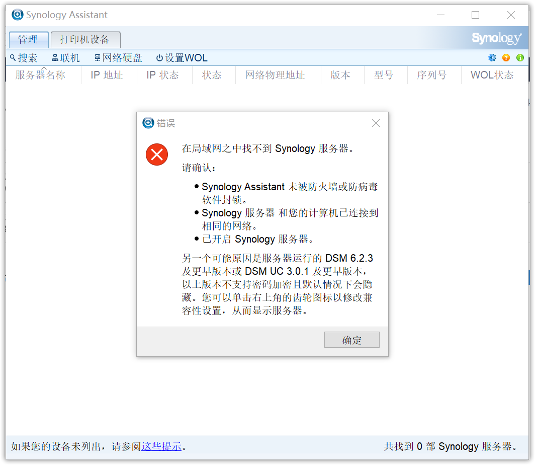 ▼运行群晖助手就能发现群晖,不想装助手可以像我一样,直接在新的页面输入网址(红框处)也能找到连接向导,记住DSM版本为6.2-23739