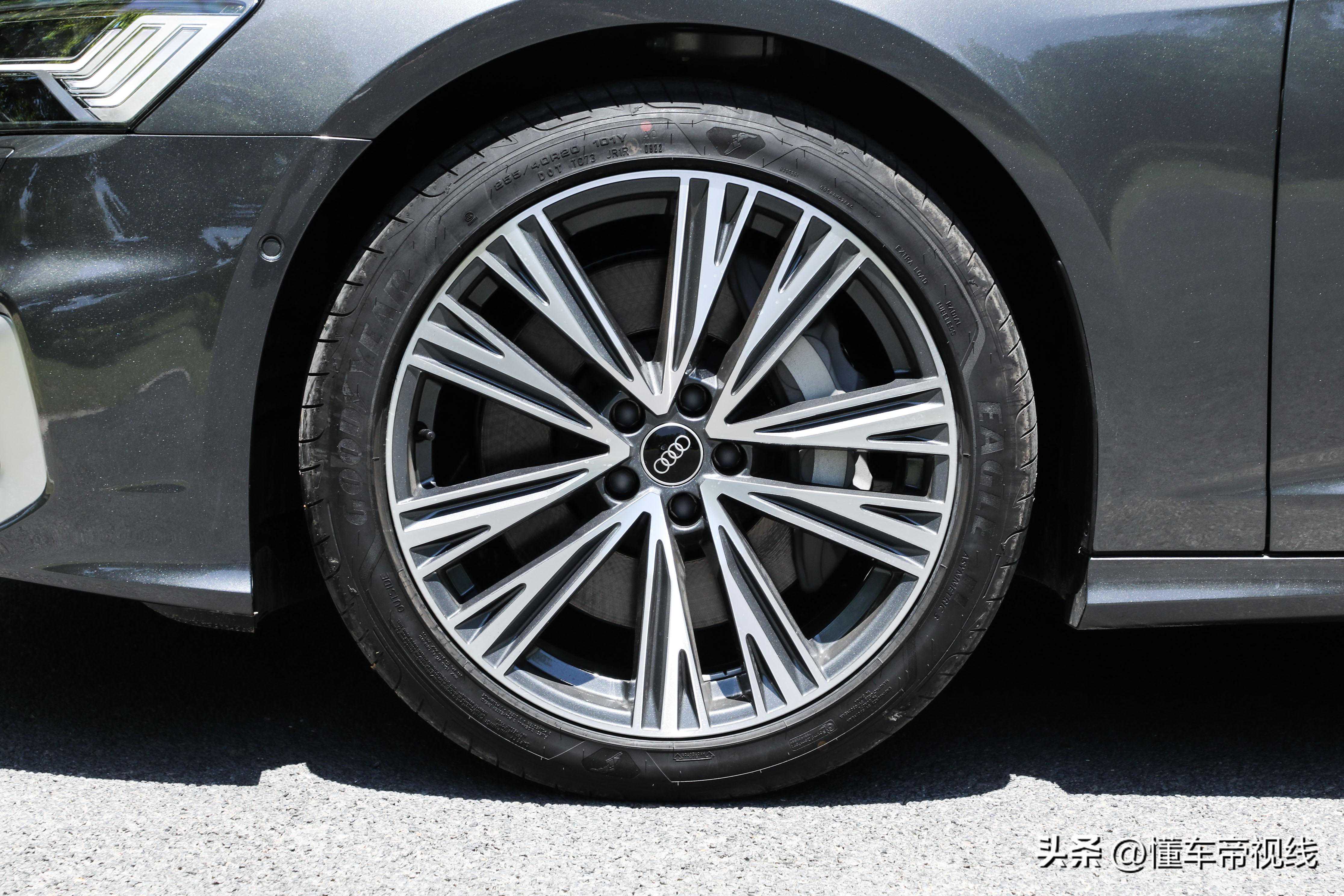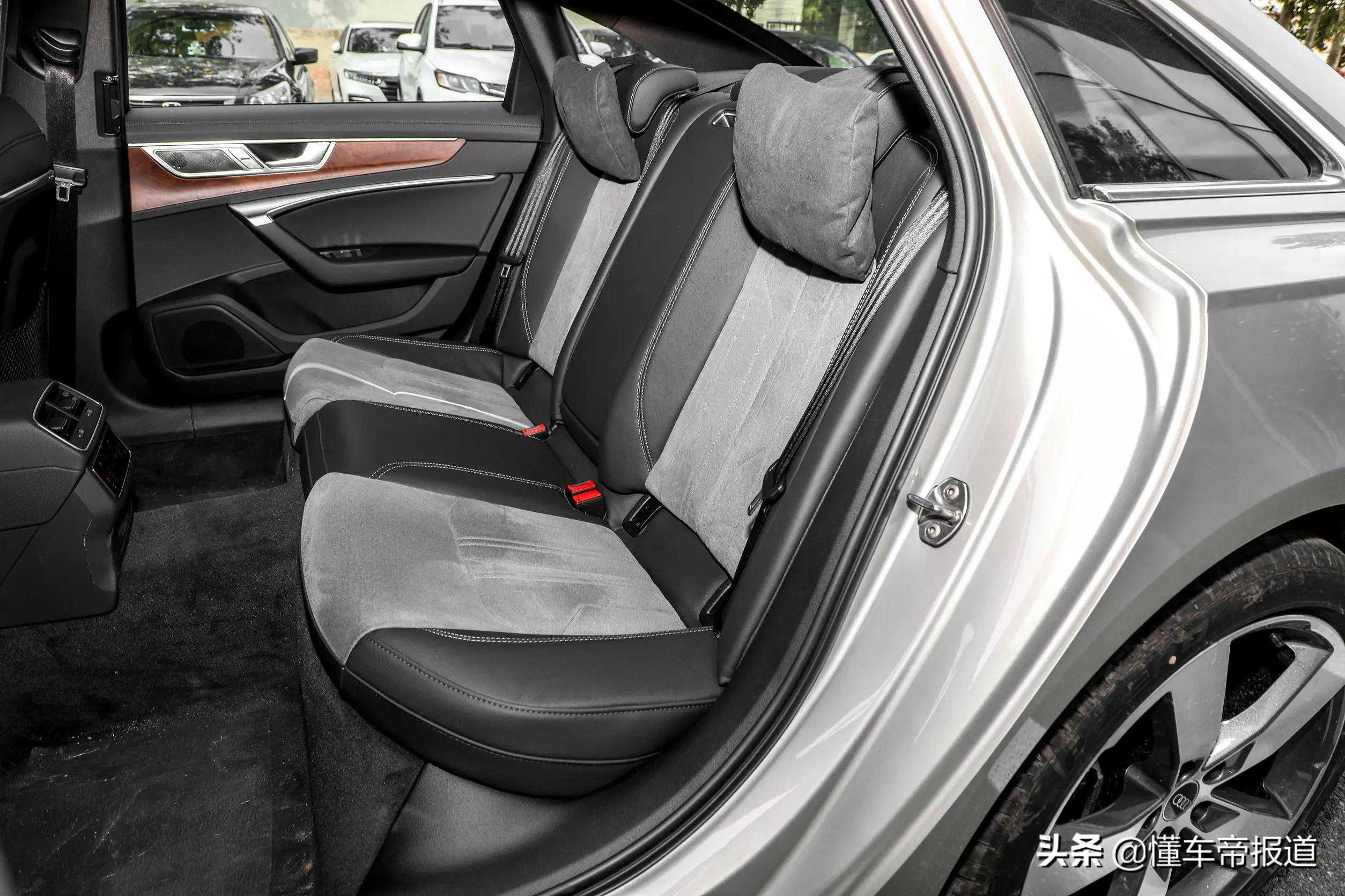 车身侧面两段式的腰线更凸显了A6L修长的车身,虽然拍摄车辆后排并不是隐私玻璃,但是在顶配版本上是有配备。尺寸方面,新款奥迪A6L长宽高分别为5038(5050)/1886/1475毫米,轴距为3024毫米,数据与老款车型保持一致。