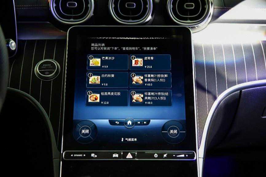 最后就是关于智能语音功能的体验,常规功能上提升了智能语音功能的唤醒与交互速度,“你好,奔驰”唤醒之后就可以连续下达指令,并且在一定时间内可以与车机做连续对话,对常规功能的识别率与控制已经足够成熟,例如对空调的控制或是对媒体功能的控制。当然最有趣的是:“你好奔驰,我想点份外卖”。