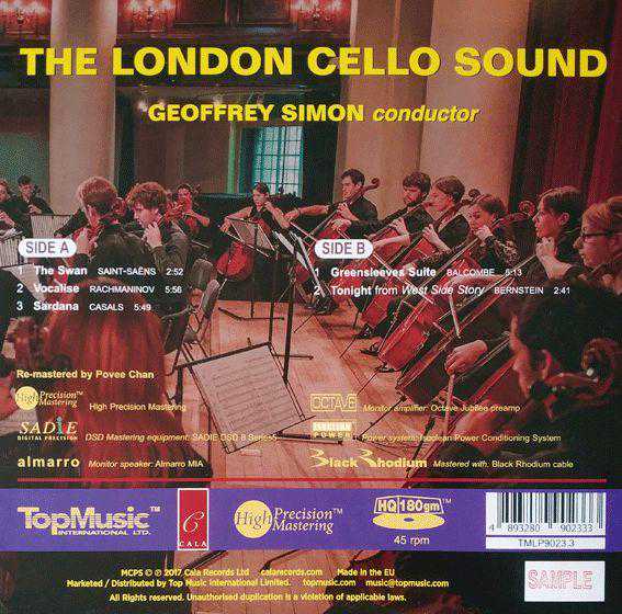 出版商TopMusic天乐唱片在2018年初夏,将这张久负盛名的唱片以HighPrecisionMastering母带处理,并且推出期待已久的45转180克黑胶唱片,无疑必将成为乐迷必备的收藏品。大家知道吗?母带处理过程使用了德国Octave八度胆机作监听,以ISOCLEANPOWER电源处理系统为后制母带设备供应纯净电源,并且全线采用英国BlackRhodium黑金发烧线材,方获得现在我们听到的宽厚、瑰丽音质。45转唱片下的40把大提琴更是圆润丰满,音质密度、活生感与质感均远胜CD,柔美的音色和和自然的音乐厅空间感带出天鹅绒般波澜壮阔的华丽感。无论是音乐迷或者音响迷们,如此经典的《TheLondonCelloSound》伦敦40把大提琴之声45转180克LP黑胶唱片仅限量一千张,怎可错过呢?