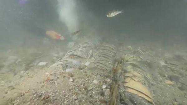 在前期的大多数时间里,队员们主要任务是清理覆盖在沉船上的泥沙。“去年的水下调查后,为保护水下文物不被海流泥沙侵蚀,考古队用沙袋进行了回填保护。但跟去年相比,遗址变化还是蛮大的,都被泥沙覆盖了,沙袋上也长满了附着的海洋生物。”考古队员陈浩说。