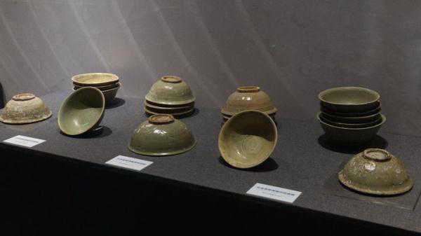 在漳州市博物馆展出的文物中,约有320件来自圣杯屿元代沉船的龙泉窑瓷器。器型以碗、盘、洗、碟为主,少量盏、高足杯等,其中不乏精品。