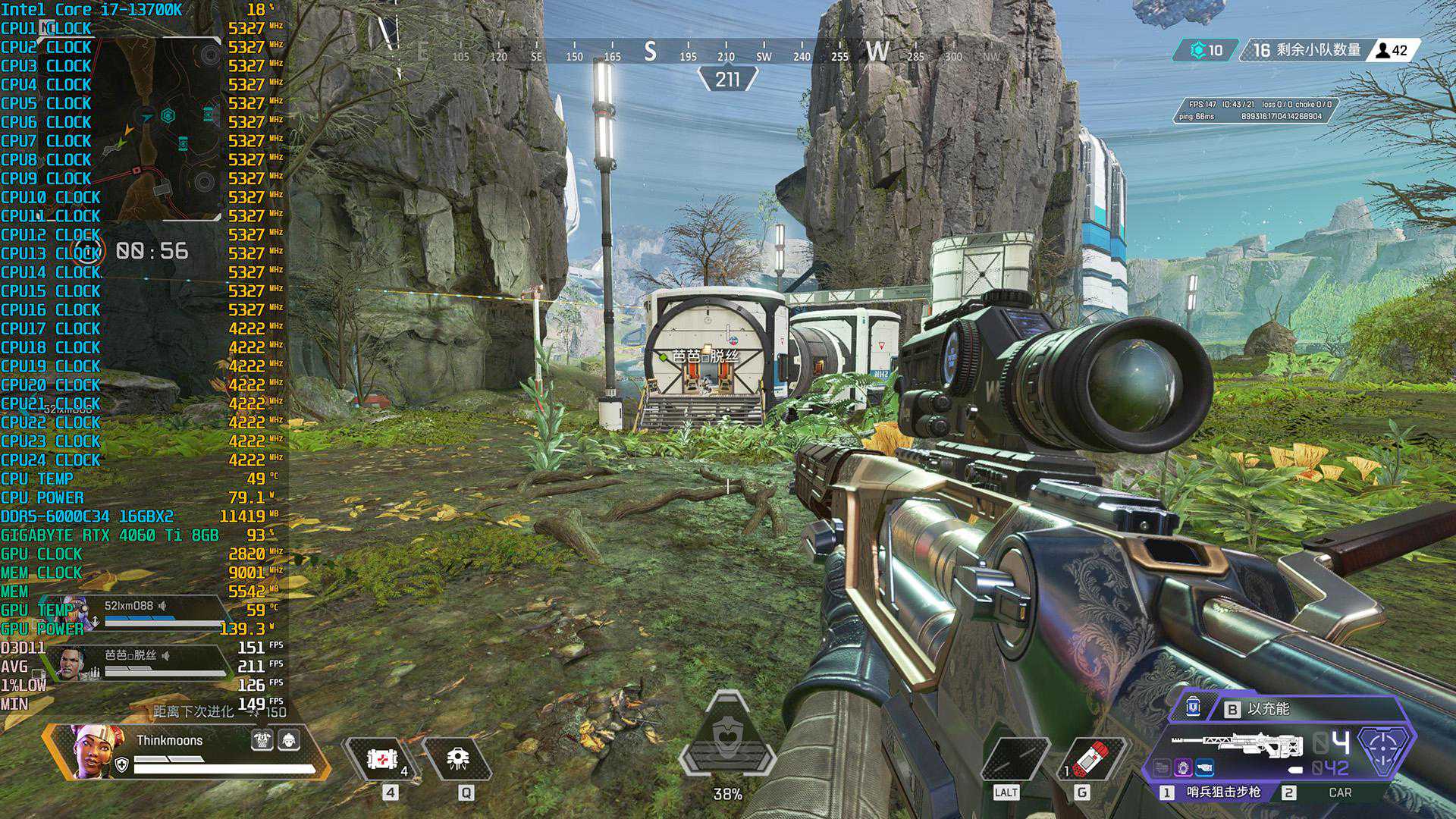 《Apex英雄》2K分辨率TSAA抗锯齿、8GBVRAM预算、各向异性16X、模型细节高和布娃娃系统高,其他设置最低,平均帧率达到211fps,完美满足主流的2K@165HZ高刷屏。