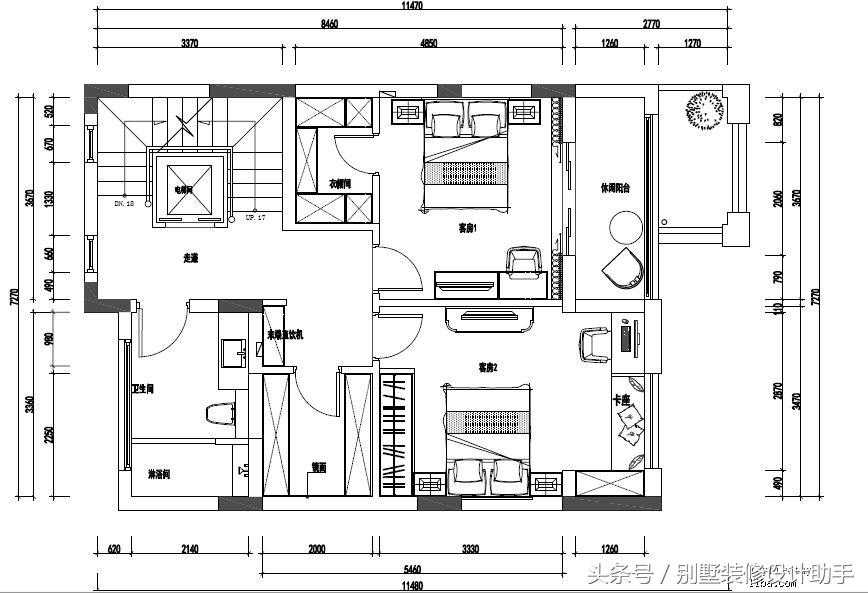 这一层的格局有较大改动,原本的北露台改为现在的卫生间,初步的想法是在外面封铝合金窗,可能的话在铝合金窗内侧浇筑混凝土顶,但这有一定的风险,怕物业不允许,如果不行的话只能在铝合金窗户内侧设置保温层,再吊石膏顶。另外从程老师处得到一个好消息,就是现在的木结构设备屋发展的相当成熟,如果物业允许,我会去考察一下该方案。该层的两个房间外面有个贯通的南阳台,准备封掉客房2的部分并且外推做一个儿童房卡座,但此处有一个疑问是邻居施工时阳台与房间相邻处有一道地梁并且有钢筋,原则上不允许拆除,程老师的意见是削平混凝土看看离地有多高,尽量通过房间的地暖和铺砖找平,不能的话就设置一个踏步,踏步上面的卡座格局作相应调整。总的来说,问题不大,但是需要提前做好思想准备。其余的设计,比较常规,听取李总的意见,在独立衣帽间外面设置一个末端直饮水吧台,这绝对是经验设计,非常实用且有比要。