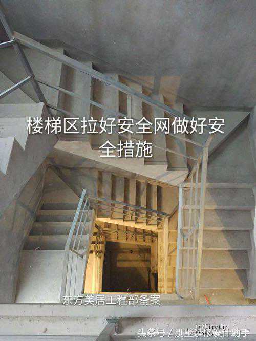 2.楼梯外侧拉上安全网保护工人施工时的安全