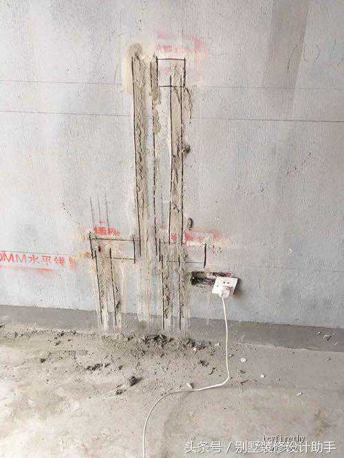 水电持续进行中,前期我亲自跟设计师和施工队把所有开关插座过目并定位的好处显现出来:只要工人按照图纸做,基本不会出现返工等扯皮的现象。这样对业主和施工方是双赢的。另外,水电定位的开关插座必须考虑完成面高度而不是毛地坪高度。一般的,铺设地暖要考虑预留十公分完成面高度,没有地暖大概在五公分左右。