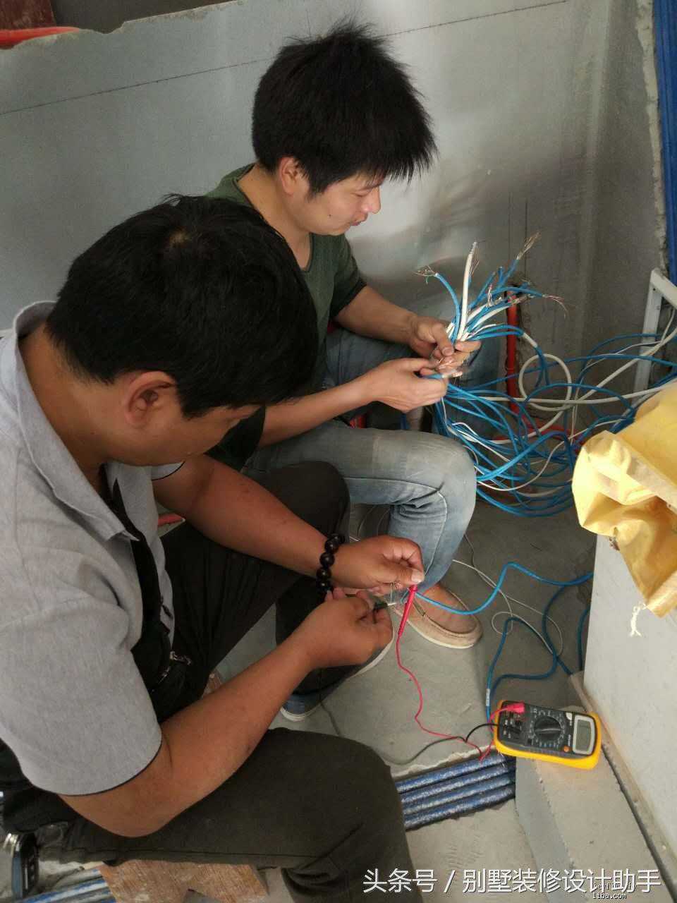 弱电线必须每根的每股都要检查(图中是我们的水电师傅,一个帅小伙,干活麻利,技术好,同时还是我家的木工,全能选手,赞)