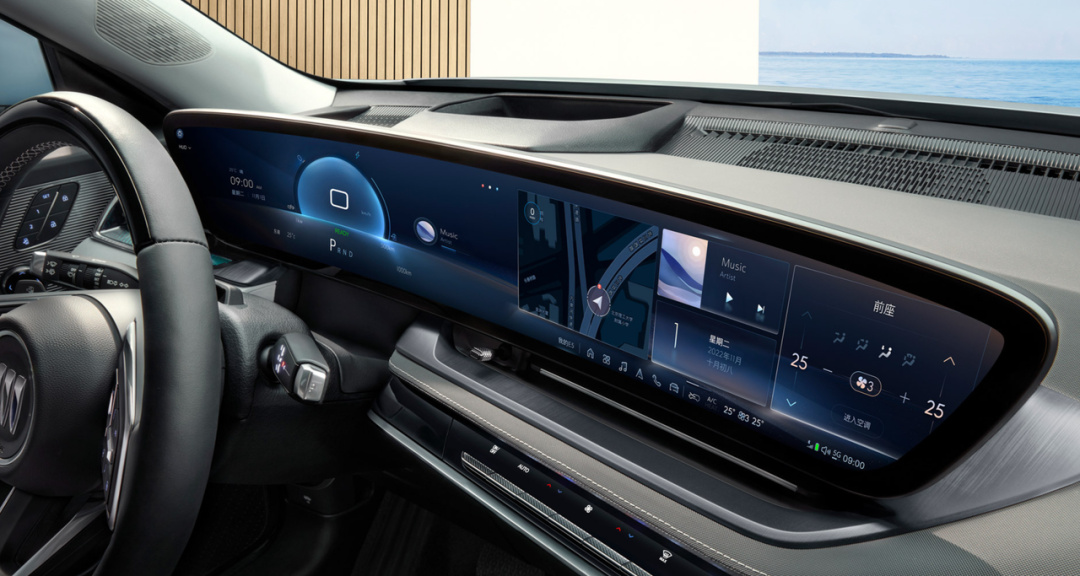 别克E5上值得说的还有这块大屏。现在大部分车机屏都是整了块iPad,难免有审美疲劳的感受。
