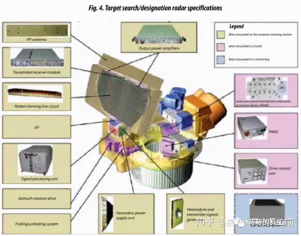 2015年装备俄军的铠甲-S2则换用了新的RPS-3型S波段搜索雷达和新型防空导弹。23Y6导弹的助推器扩大到210mm,初速1850m/s,射程增至30km。RPS-3搜索雷达采用两块背靠背金字塔形安装的无源相控阵天线,数据刷新率提高1倍,探测距离40km,方位角增加到90°,可跟踪40个来袭目标。由于雷达特殊,识别起来并不困难。后来俄罗斯还发展出铠甲-SM和铠甲-SA,甚至发展出了舰载型,还配备了钉子小型导弹打小无人机。该系列也是屡历战火,经常的作战对象是无人机,虽然也击落了不少目标,但也付出了多套被摧毁的代价。究其原因,弹炮合一系统的对付特性得背锅。弹炮合一意味着炮打不准,导弹做不大,容易互相干扰。铠甲S1/S2的火炮由于两个小转塔采用大间距交替射击,导致共振明显精度较低,如同撒豆,导弹那个助推结构也导致动力足的时候没法机动,能机动了越飞越慢,飞的慢了机动性下降的怪圈。铠甲S1雷达搜索角度80度天顶有盲区,S2的对低慢小目标识别效率不高,而且特别考验操作者的素质。