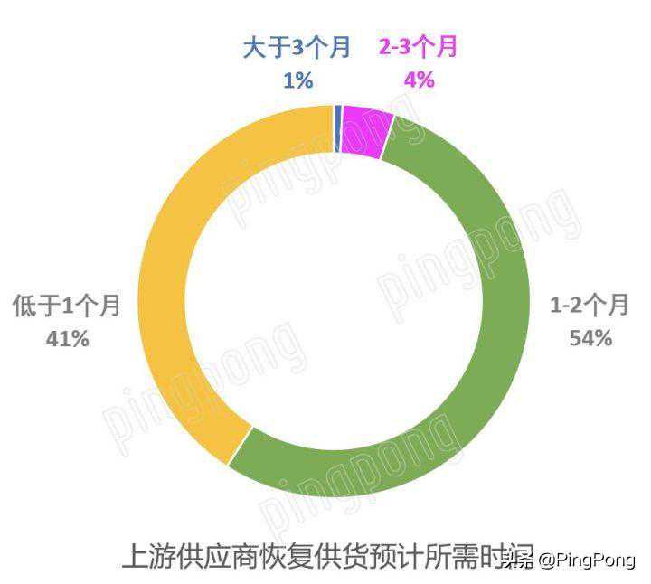 这意味着:如果一个月左右的时间未完全恢复生产,那可能1/4左右的卖家将出现全面断货的情况;但如果这个时间需要长达两个月以上,那3/4的卖家将全部面临断货的现状。而对于恢复供货的时效,有超过40%的卖家反映将控制在一个月以内,95%左右的卖家认为两个月以内会恢复供货。