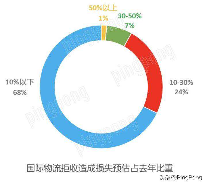 此外,海外客户的拒收对于卖家的影响也相对较小,将近8成的卖家都表示损失占比去年营收的比例在10%以下。