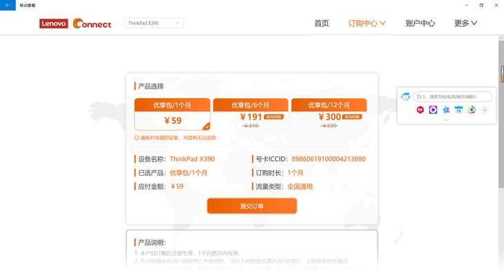 作为一款4GLTE产品,联想为ThinkPadX390赠送了6个月每个月15GB高速流量(超出后降速)的移动4G套餐。